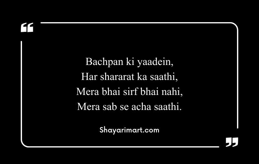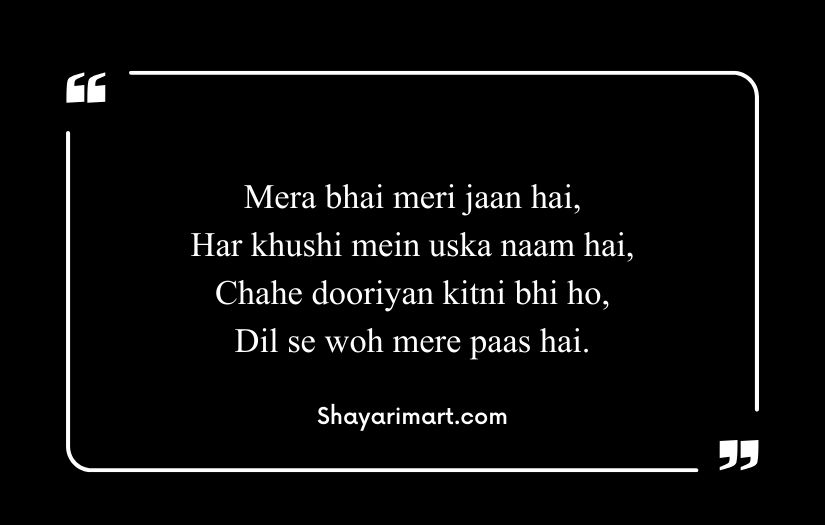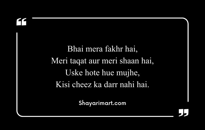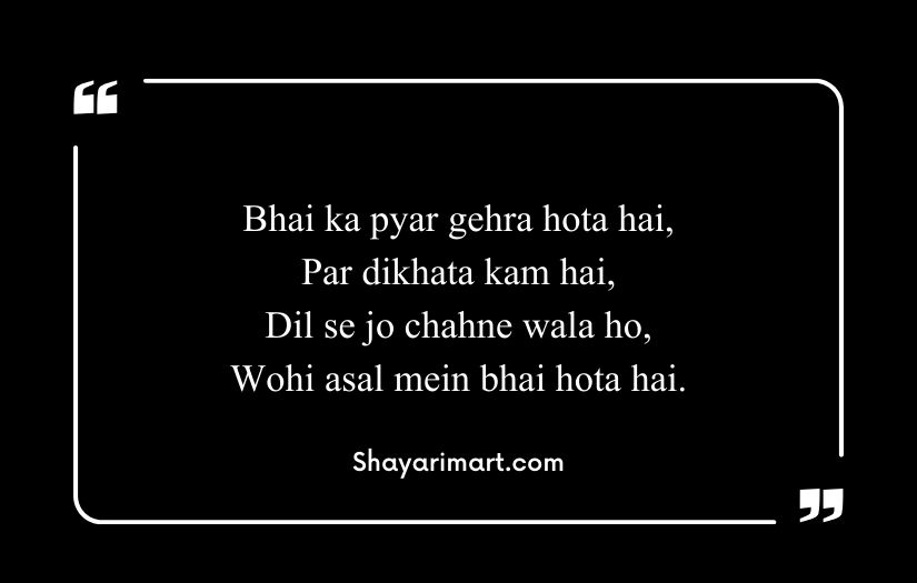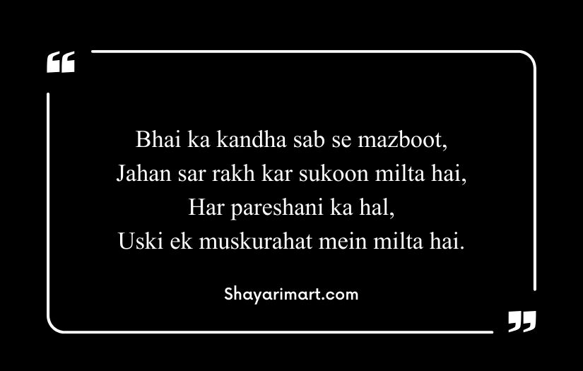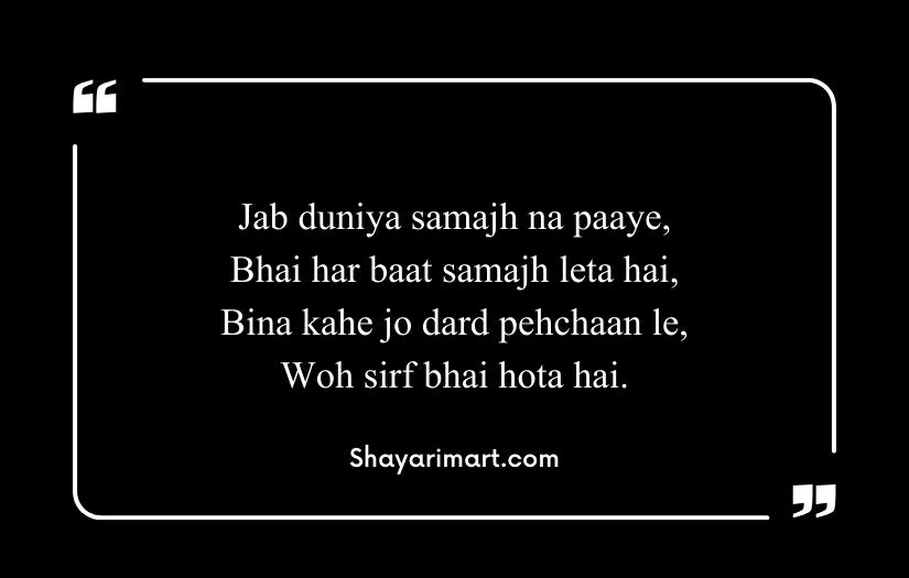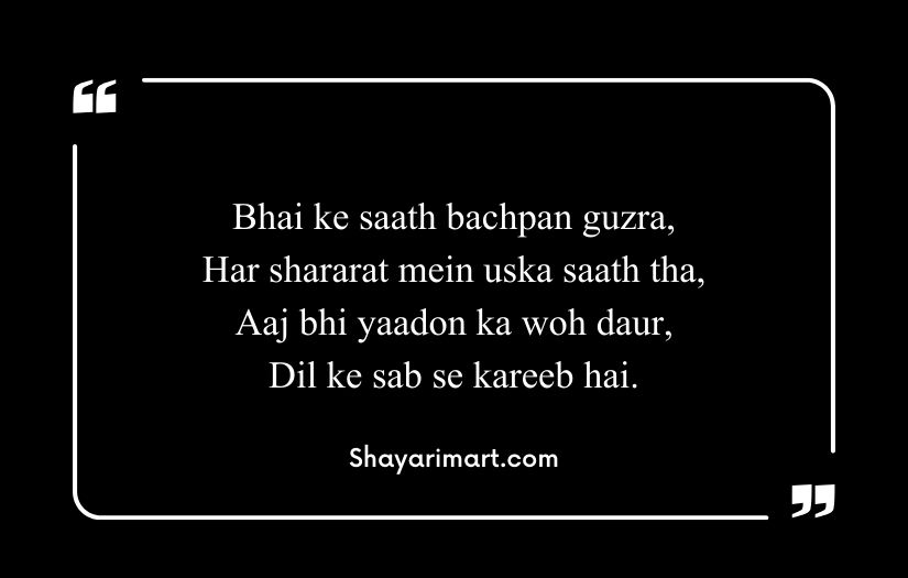 This type of shayari reflects shared childhood memories, laughter, small fights, and countless moments of togetherness. It shows how a brother stands beside you in both happy and difficult times, offering strength and encouragement. Reading brother shayari makes people feel grateful for having such a special relationship in their lives.
