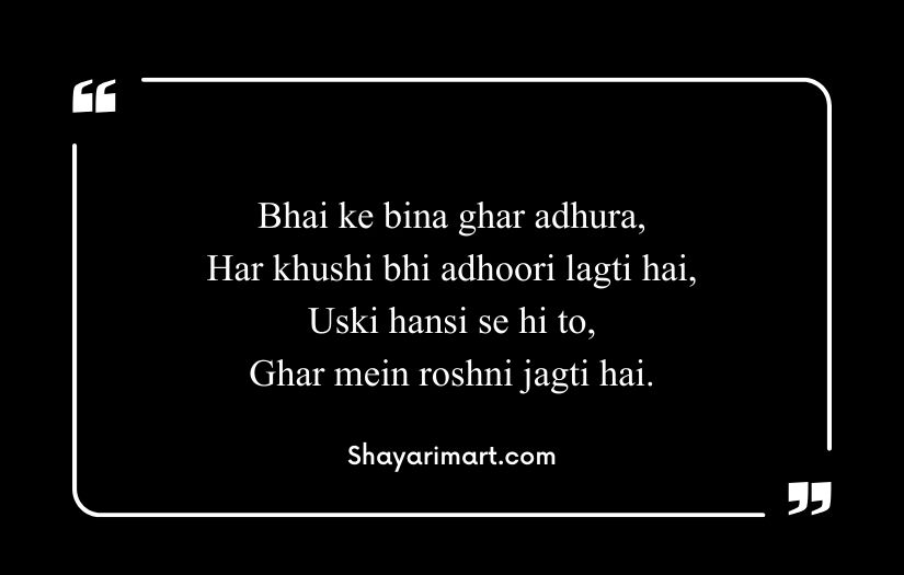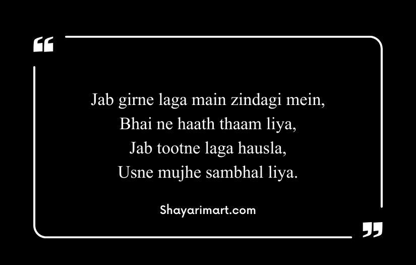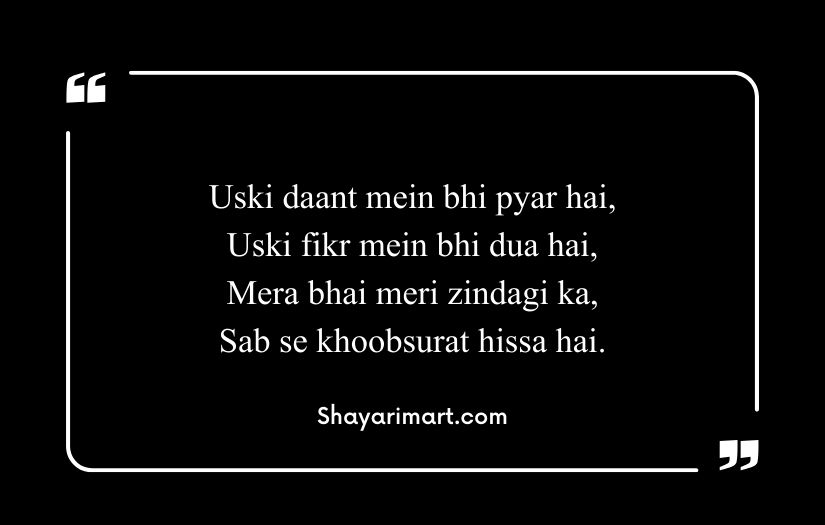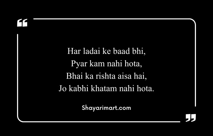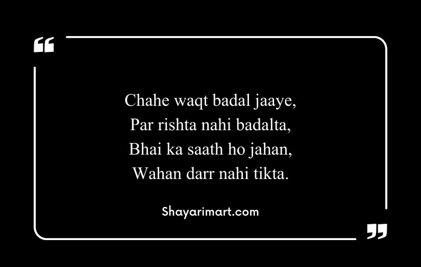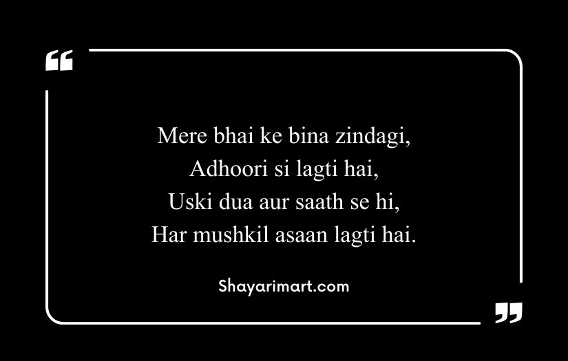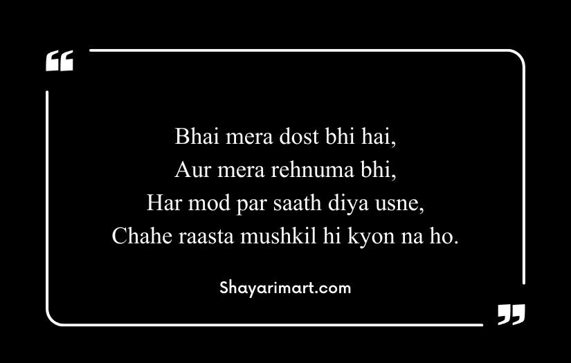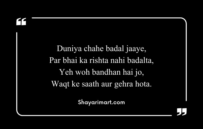 This type of shayari reflects shared childhood memories, laughter, small fights, and countless moments of togetherness. It shows how a brother stands beside you in both happy and difficult times, offering strength and encouragement. Reading brother shayari makes people feel grateful for having such a special relationship in their lives.