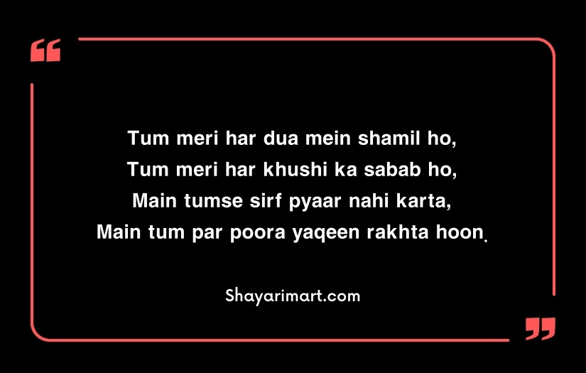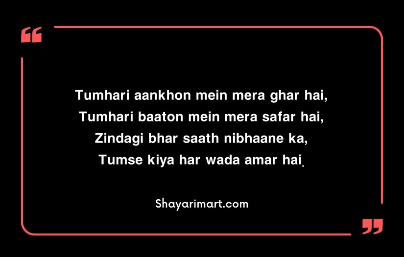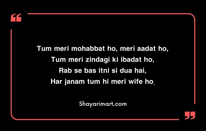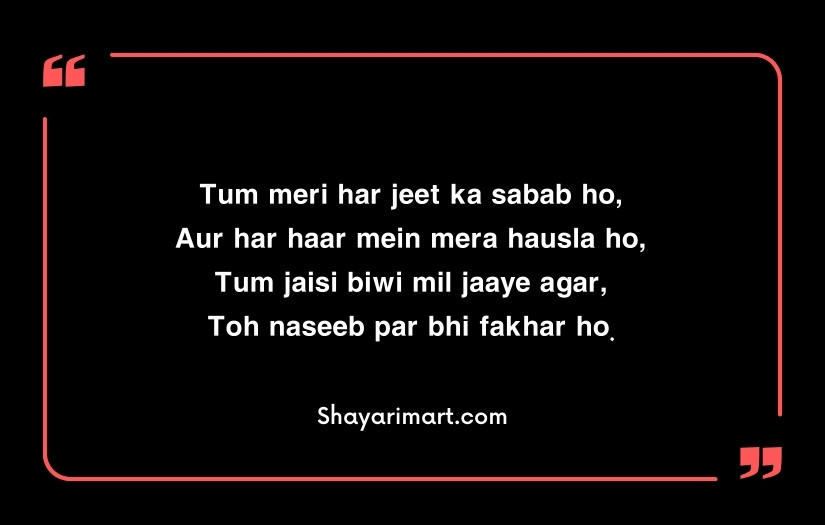Overall, love shayari for wife in English turns everyday emotions into poetic devotion. Like the spiritual depth found in Rumi’s verses, it teaches that true love grows through patience and respect. Through soft and meaningful words, this shayari honors the beautiful bond between husband and wife and celebrates lifelong togetherness. True Love Shayari For Wife in English | Short Love Shayari For Wife in English | Heart Touching Love Shayari For Wife in English | Romantic Love Shayari For Wife in English