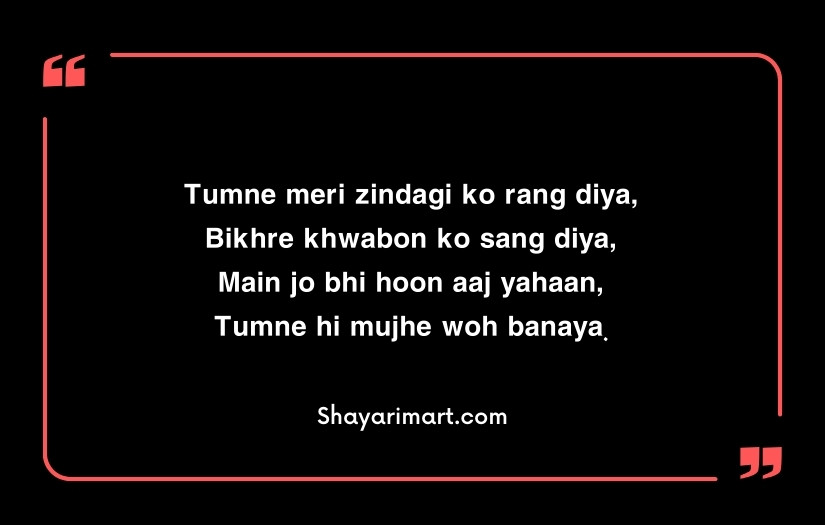Many writers and poets, including Rabindranath Tagore, Pablo Neruda, and Emily Dickinson, portrayed love as gentle companionship and emotional closeness. Their influence appears in love shayari for a wife that speaks of trust, understanding, and shared dreams. A wife is shown as the heart of the home and the strength behind every success.