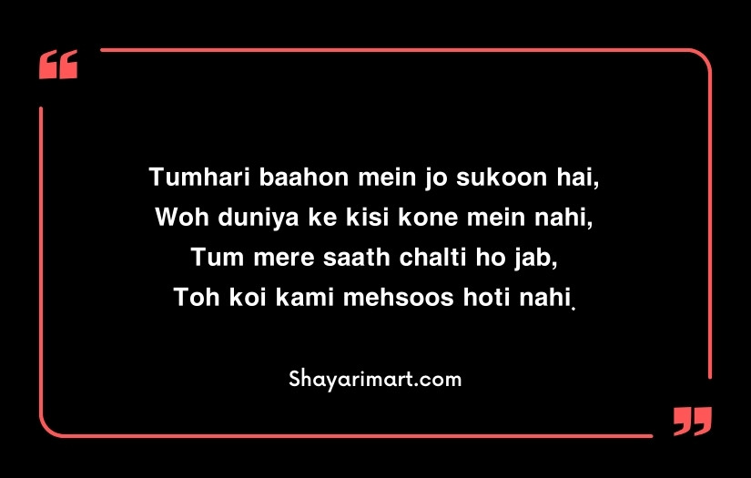 Love shayari for wife in English beautifully expresses deep affection, respect, and gratitude for the woman who shares life’s journey. Inspired by poets like Rumi, Khalil Gibran, and William Shakespeare, this form of shayari presents a wife as a soulmate, best friend, and source of peace. It reflects love that is mature, loyal, and deeply rooted.
