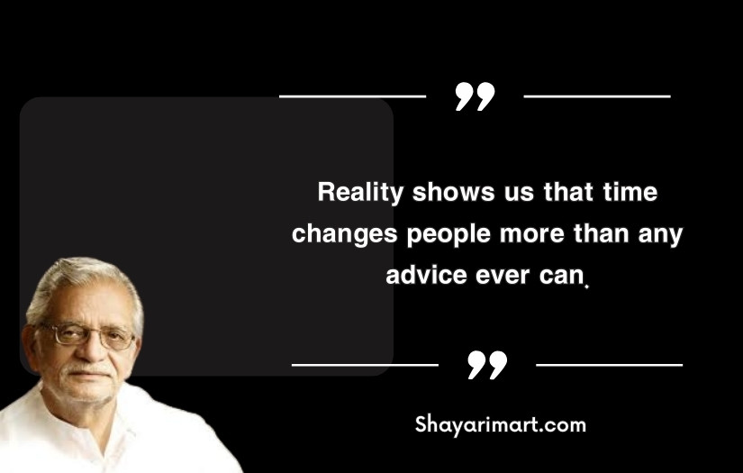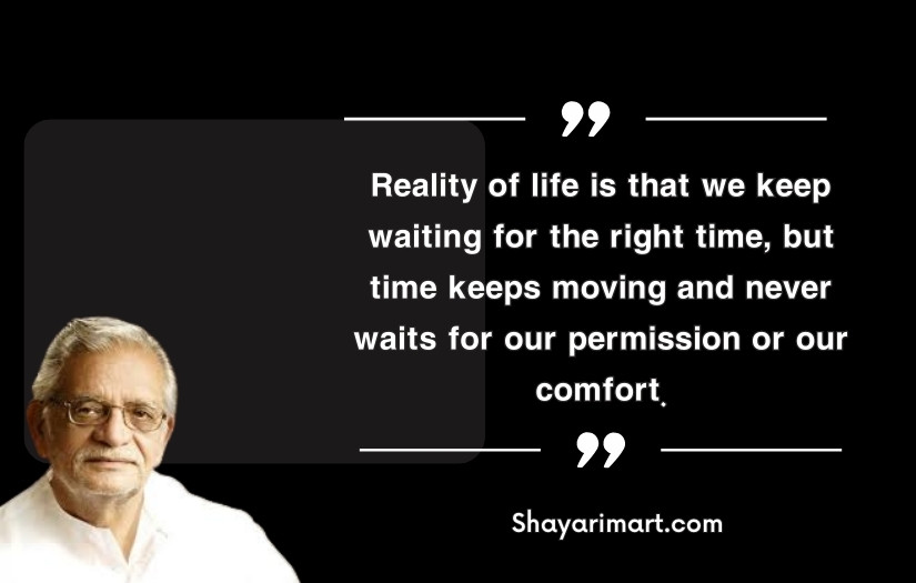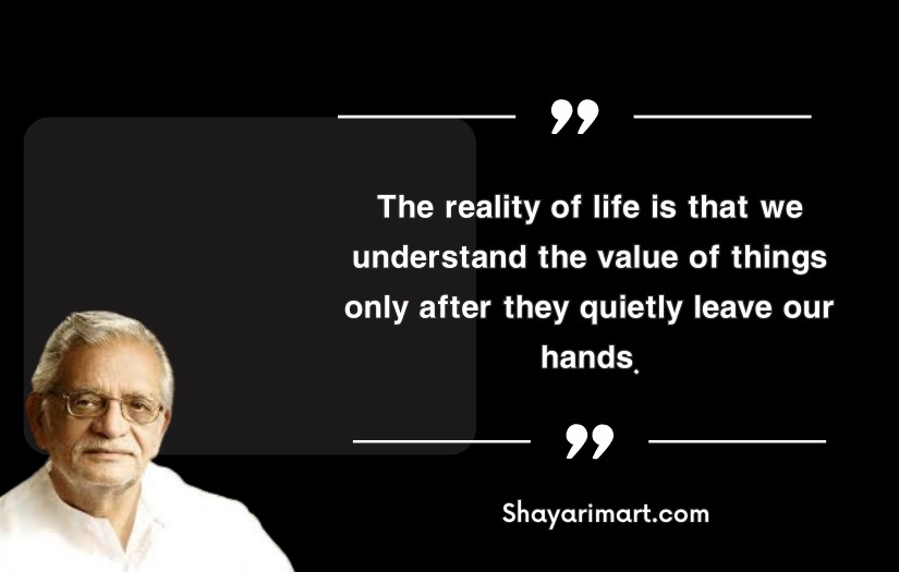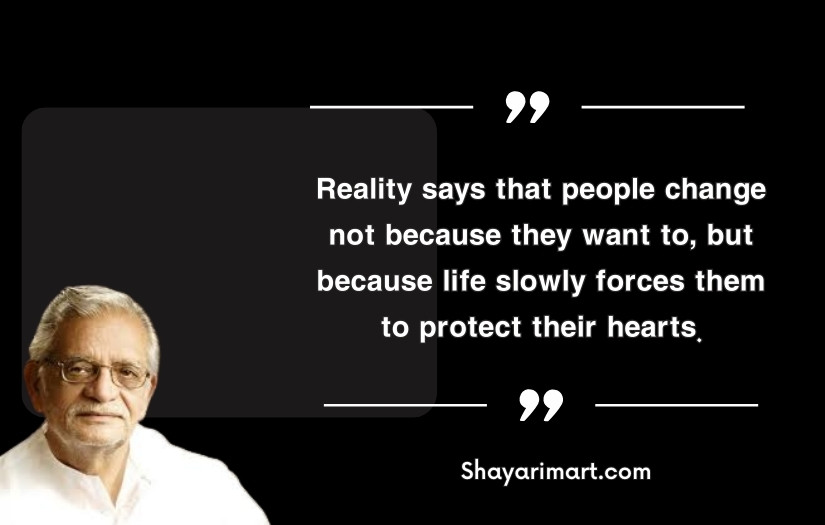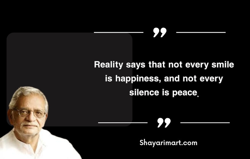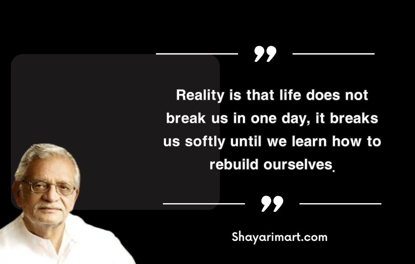 Reality Gulzar Quotes On Life reflect deep truth, simplicity, and emotional honesty drawn from everyday experiences. Gulzar portrays life as it truly is—imperfect, quiet, and often shaped by silence more than words. His thoughts reveal how reality is felt in small moments, unspoken pain, and subtle emotions rather than dramatic expressions.
