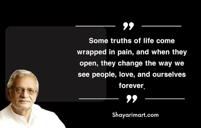 Reality Gulzar Quotes On Life encourage awareness and emotional depth. His words help readers accept truths without bitterness and find meaning in simplicity. Through gentle yet powerful expression, Gulzar turns life’s harsh realities into thoughtful wisdom that comforts the heart and awakens understanding. Heart Touching Reality Gulzar Quotes On Life | 2 Line Deep Meaning Reality Gulzar Quotes On Life | Heartfelt Reality Gulzar Quotes On Life | Reality Gulzar Quotes On Life in English | Best Reality Gulzar Quotes On Life