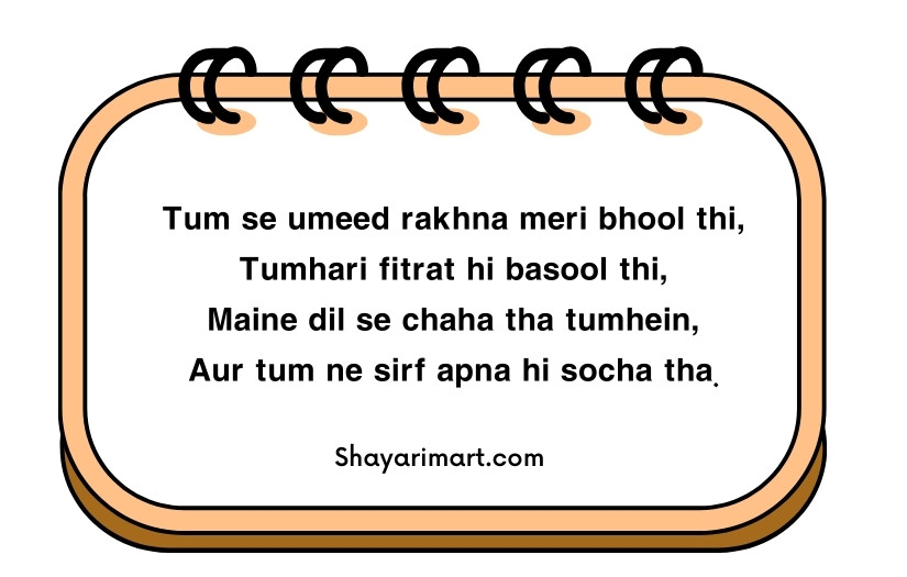 Many readers feel connected to selfish shayari in English because it highlights the harsh truth of human behavior. It shows how selfish actions can weaken trust, love, and friendships. Well-crafted selfish shayari in English delivers strong emotional messages that stay in the reader’s mind. These verses often encourage self-respect and emotional awareness.
